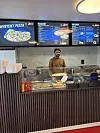 Fasilitetene for å sette seg ned å nye maten fremstår som noe uferdig, men mesteparten av kundene bestiller take-away.